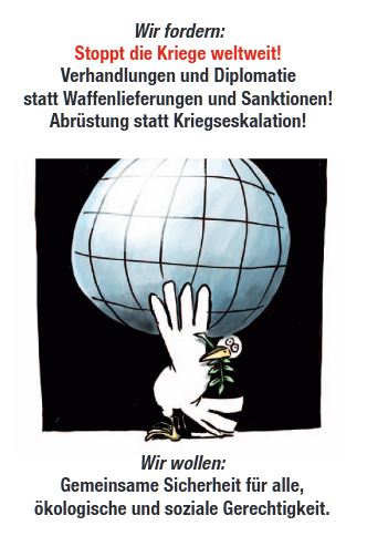 Presseinformation der Friedenskoordination BerlinAntikriegstag Berlin 1. September 2022 Die Friedenskoordination Berlin (FRIKO) ruft auf zu einer Fahrraddemo mit Zwischenkundgebungen bei den Verantwortlichen für die momentane Politik, in denen diese zur … Weiterlesen
