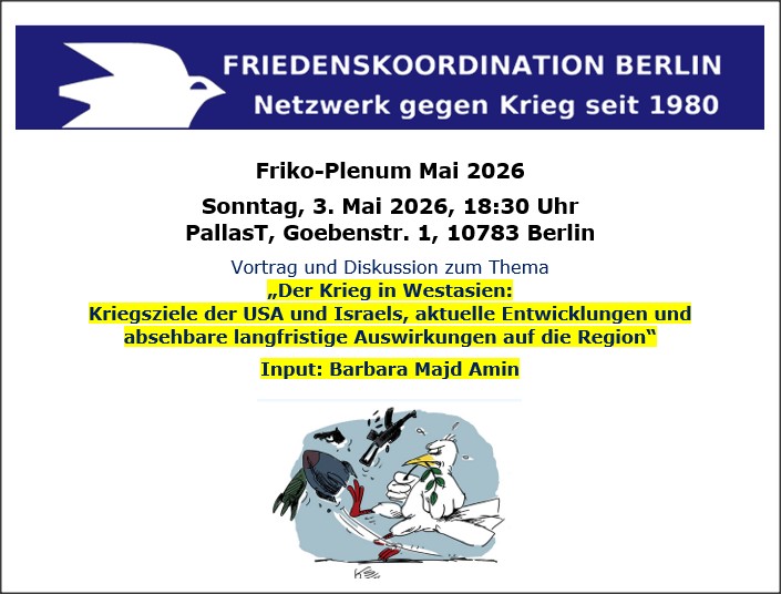 Sonntag, den 3. Mai 2026 um 18:30 Uhr PallasT, Goebenstr. 1, 10783 Berlin(U2 Bülowstr, U7 Kleistpark, Busse M48, M85, A187) TOPs: Einladung als PDF zum Herunterladen: Frikoplenum Mai 2026 – … Weiterlesen